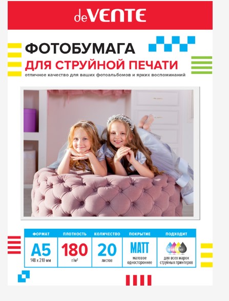 —Фотобумага для струйной печати, deVENTE, А5, 20 л, 180 г;м2, матовая, односторонняя, 2042403