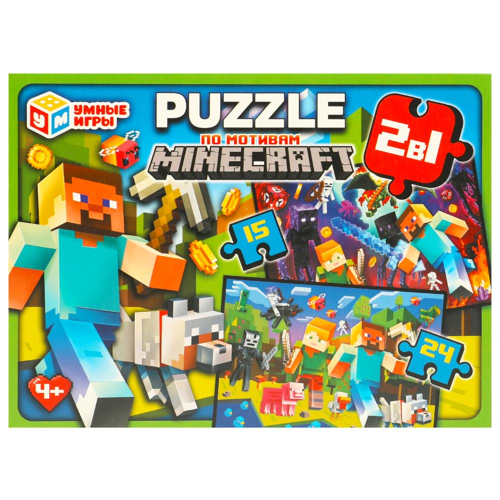 —Пазлы. По мотивам Minecraft. набор 2 в 1- 15 и 24 детали, 373661