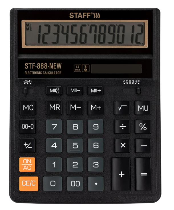 —Калькулятор настольный STAFF STF-888-New (202x158 мм), 12 разрядов, двойное питание, черный, 273831