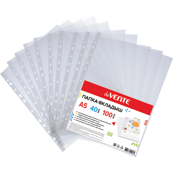 —Папка-вкладыш 'deVENTE' A5 вертикальная, 40 мкм, гладкая фактура, (100 шт;уп), 3050940