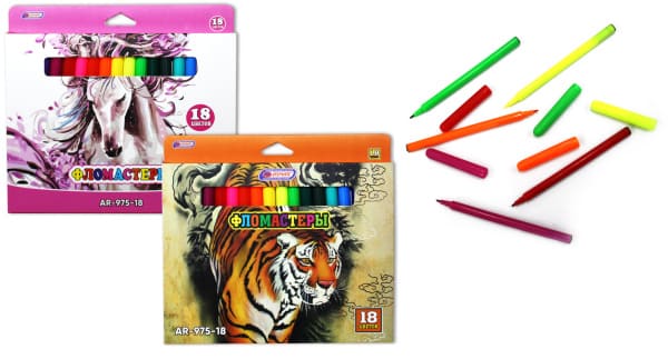 Фломастеры 18 цв , карт.упаковка, европодвес, AR-975-18