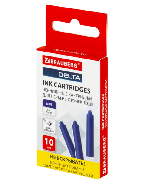 —Картриджи чернильные BRAUBERG DELTA , (10 шт;уп), синий цвет, 143956