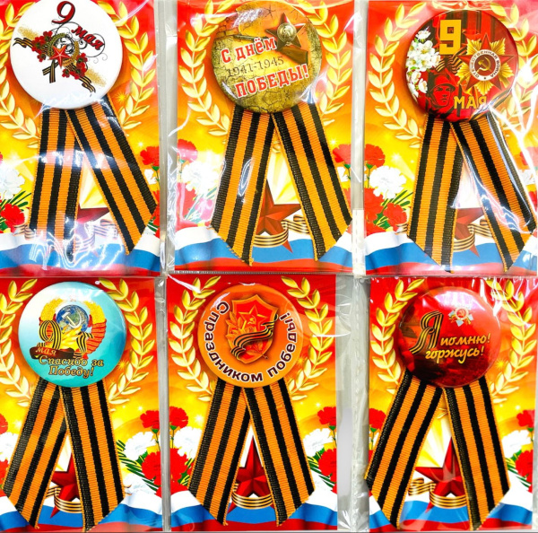 —Значок 'С Днём Победы' с георгиевской лентой, европодвес,(ассорти),1532