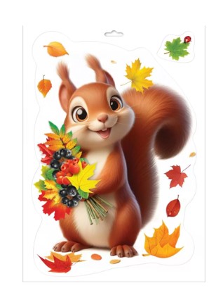 Двусторонняя наклейка, 'Белочка с осенним букетом', 0201135