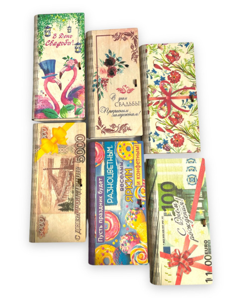 —Конверт для денег деревянный, (печатный), дизайн в ассортименте, КДП;КД