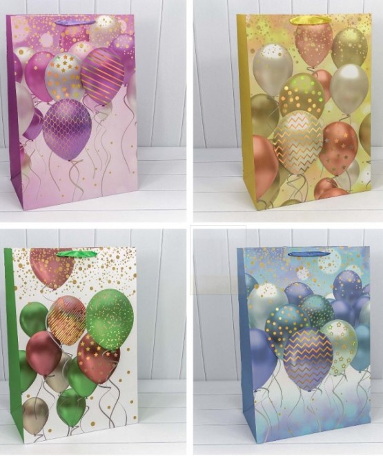 Пакет подарочный с 3D аппликацией, Воздушные шары, (микс) 42х62х25, 210 г, 000111N