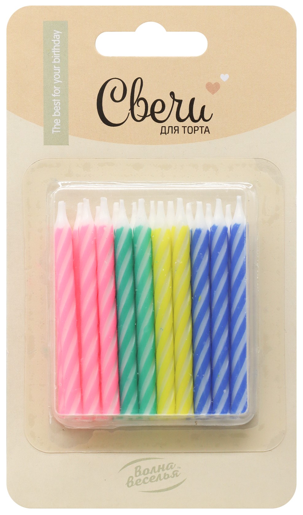—Набор свечей, Волна Веселья, Яркое, Ассорти, (20 шт;уп), 802915