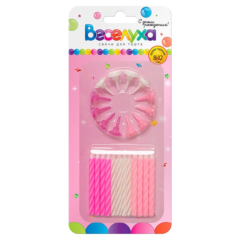 —Свечи тортовые классические 'Микс' Розовый, белый с держ, 24шт;6 см, 620100.G03