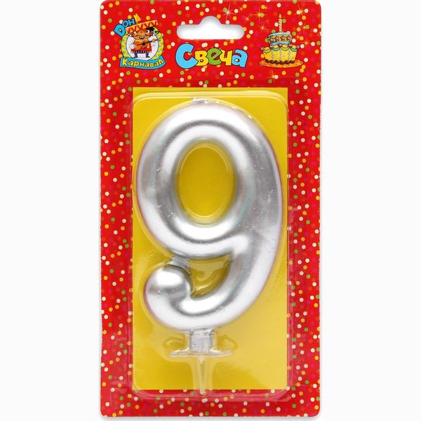 Свеча для торта 'Цифра 9. Серебряный металлик' Миленд, картон. уп., европодвес, С-1881