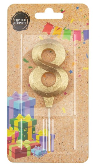 —Свеча на шпажке «Грань» цифра 8 золото, 2978