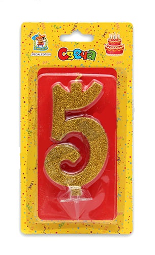—Свеча для торта 'Цифра 5. Золотой глитер' Миленд, картон. уп., европодвес, С-1897