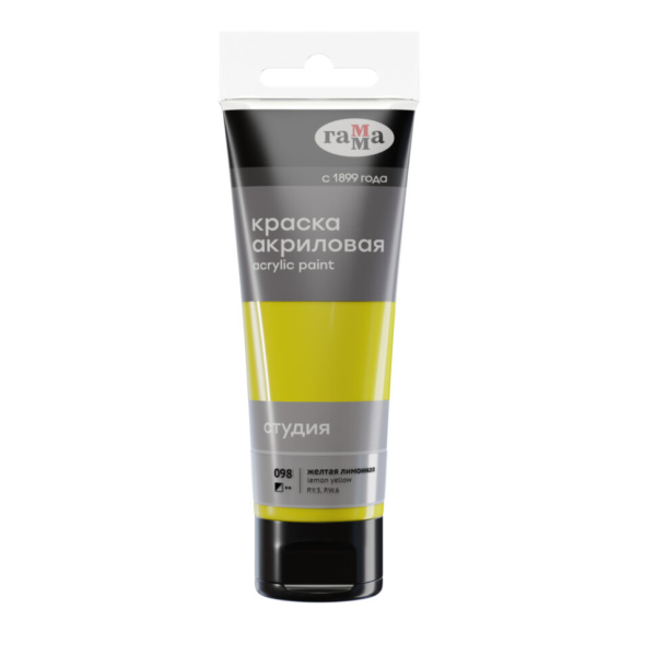 —Краска акриловая художественная Гамма 'Студия' желтая лимонная, 75мл, 280220098