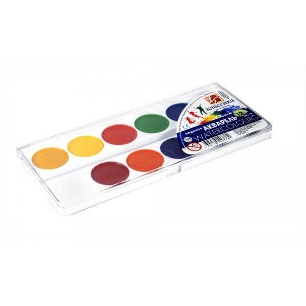 Акварельные краски 10 цв. Гамма 'Юный художник', медовая, пласт. уп., европодес, без кисти, 212072