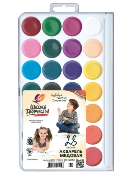 —Акварельные краски 28 цв. Луч 'Школа творчества' медовая, без кисти, 29С 1759-08