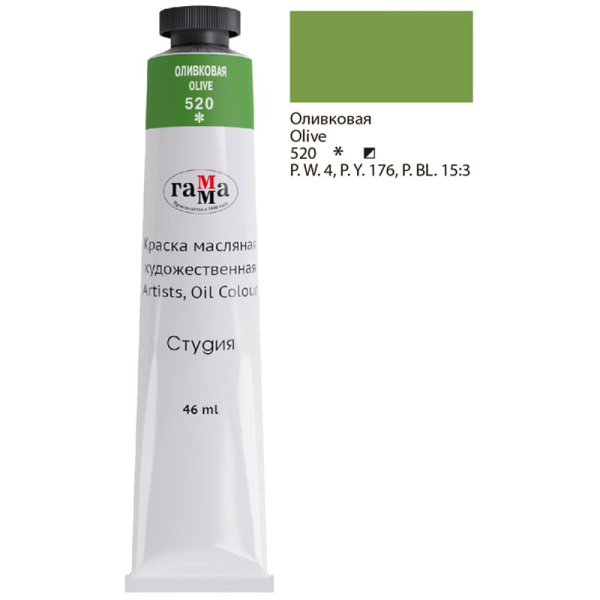 Краски масляные Гамма 'Студия' 46мл, туба оливковая, 0,00.А046.520
