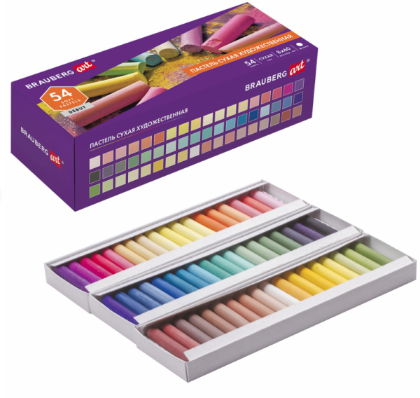 —Пастель сухая художественная BRAUBERG ART DEBUT, 54 цвета, круглое сечение, 181462