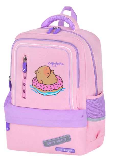 Рюкзак BRAUBERG STAR, 1 отделение, 5 карманов, «Capybara», розовый, 40×29×13 см, 272062