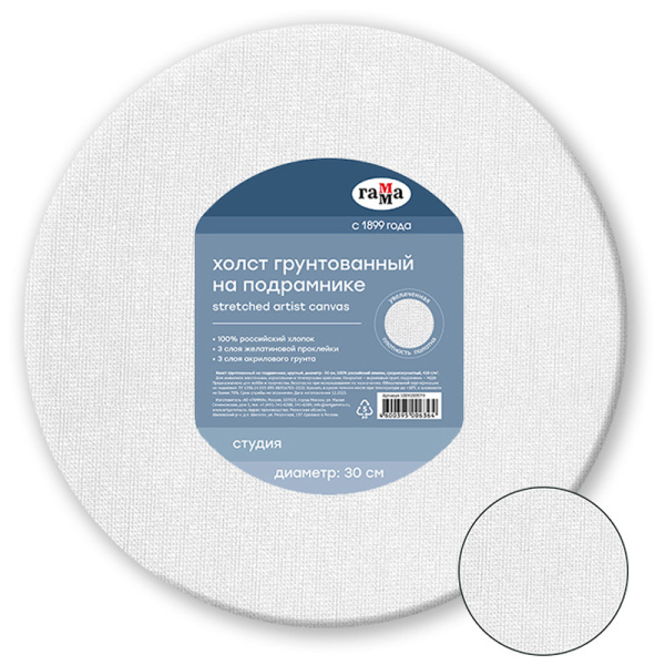 Холст на подрамнике Гамма 'Студия' диаметр 30 см круглый , 100% хлопок , среднее зерно, 1009202079