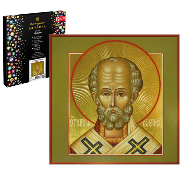 —Алмазная мозайка 30х30 см, Николай Чудотворец, Phoenix plus, 65601