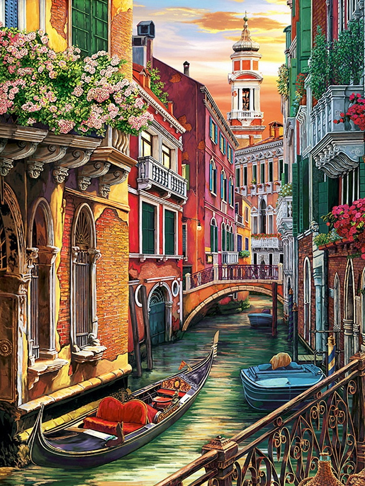 Алмазная мозайка (классич.) 17х22 см, на картоне (30 цв.) 'Мостик в Венеции', НД-8517